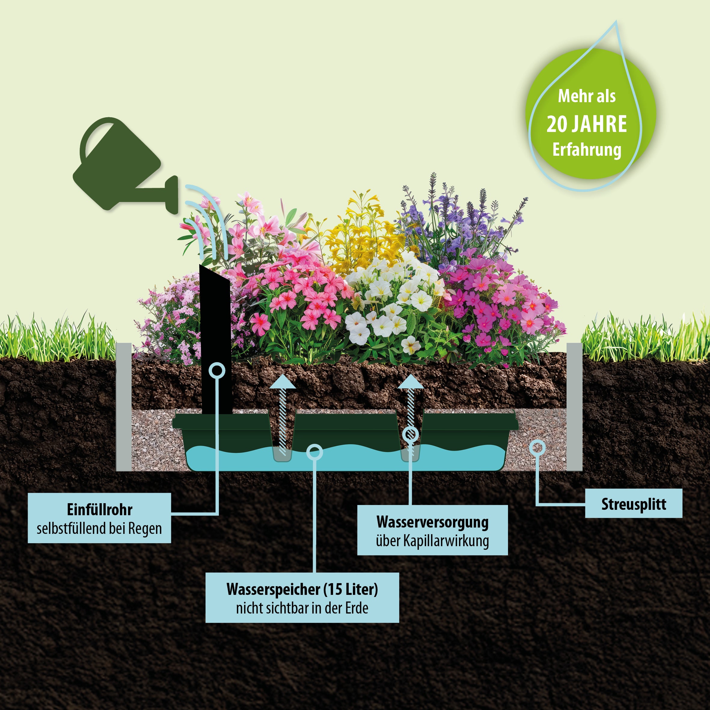 Das Bewässerungssystem Regadio ermöglicht eine intelligente, zeitsparende und ressourcenschonende Lösung, mit der Ihre Pflanzen dauerhaft gepflegt bleiben – ganz ohne tägliches Gießen und selbst bei größter Hitze. Pro Jahr lassen sich bis zu 200 Liter Wasser einsparen, die Pflegeintervalle halbieren sich und ab dem zweiten Jahr sinken die Kosten um bis zu 40 %.