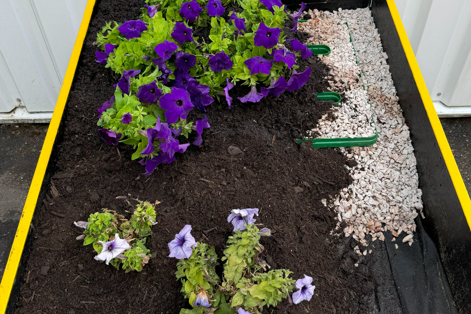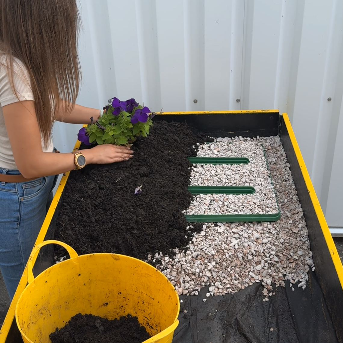 Mit wie viel Streusplitt muss das Beet gefüllt werden?