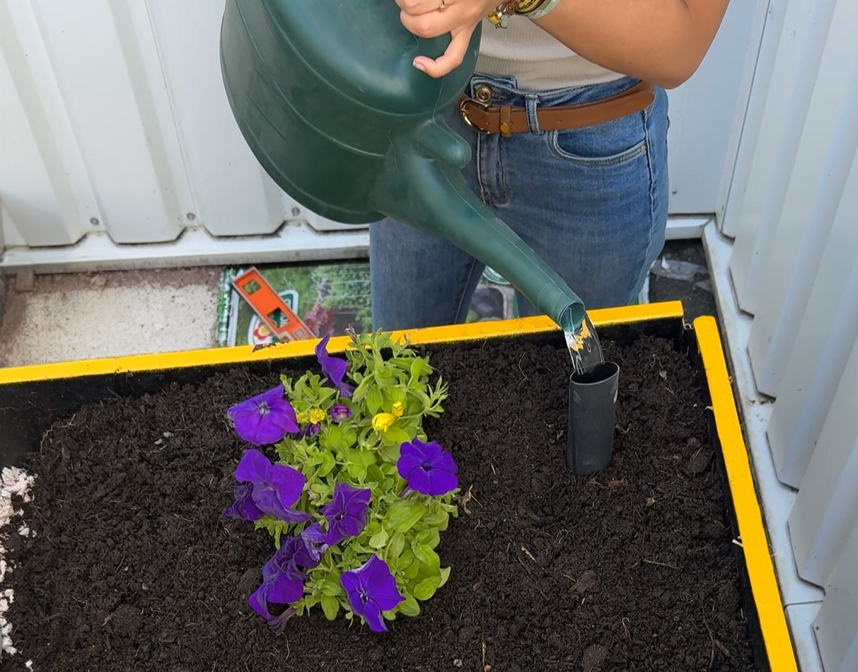 Um festzustellen, ob sich im Regadio noch ausreichend Wasser befindet, schaue einfach in das Einfüllrohr. Wenn du den grünen Wannenboden erkennst, solltest du 15 Liter Wasser nachfüllen. Das entspricht eineinhalb Füllungen einer normalen Gießkanne mit einem Fassungsvermögen von 10 Litern.